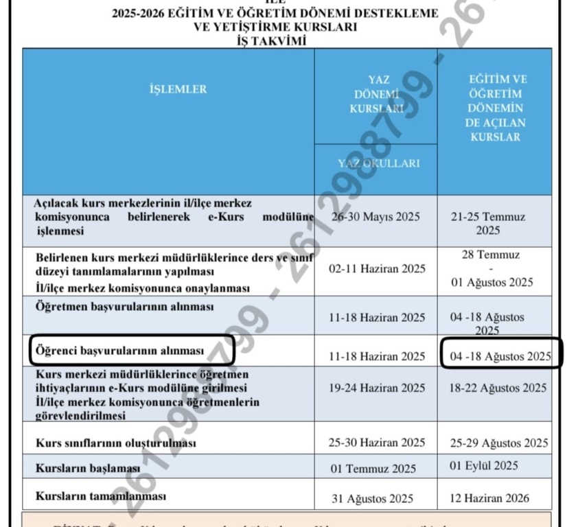 2025-2026 Eğitim ve Öğretim yılı Destekleme ve Yetiştirme Kurslarımıza katılmak isteyen 11. VE 12.sınıf öğrencilerimizin '4-18 Ağustos 2025' tarihleri arasında başvurularını yapmaları gerekmektedir.